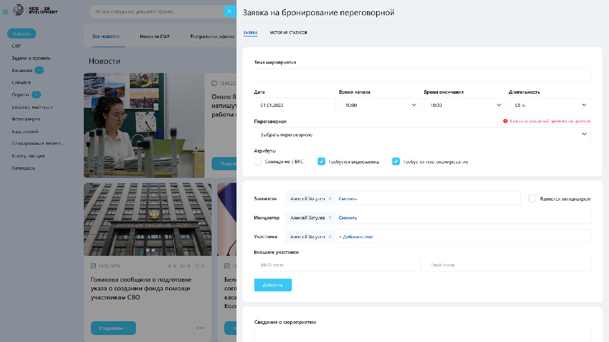 Внедрение модуля в Битрикс24 ликвидировало разрозненность ИТ-инструментов. Мы создали прозрачную экосистему, где исключены двойные бронирования, автоматизирован заказ оборудования, а административный персонал управляет приоритетами встреч в режиме единого окна.
