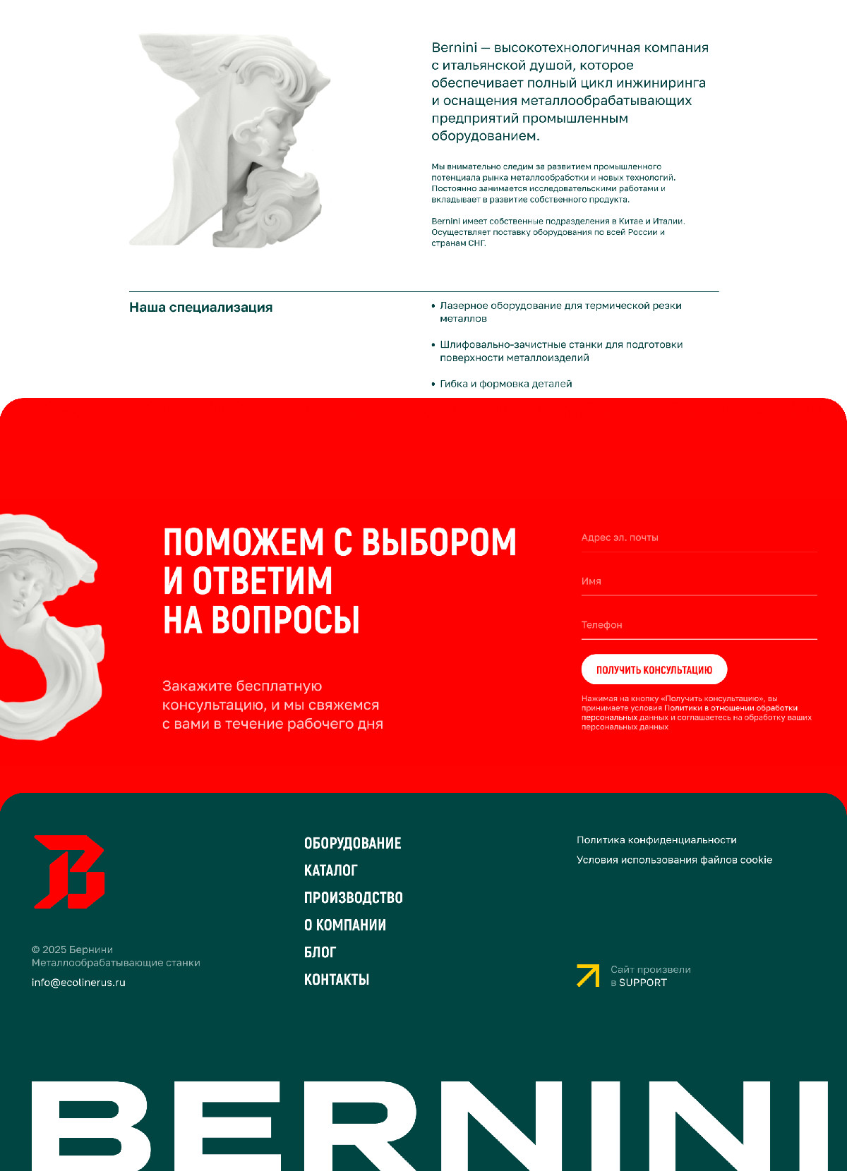 Сайт для компании BERNINI