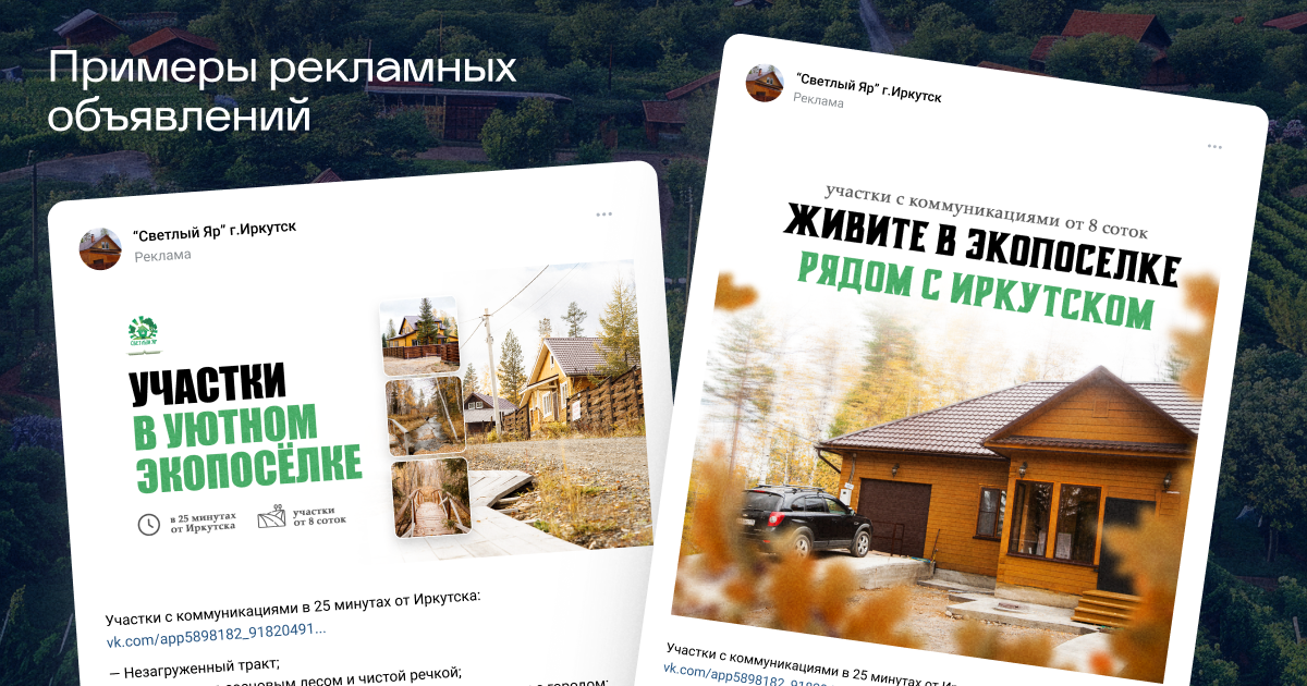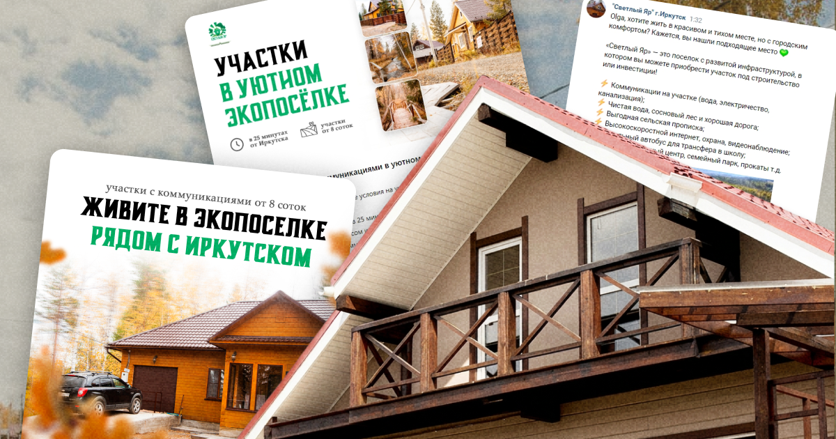 Эко-посёлок «Светлый Яр», расположенный в 30 минутах от Иркутска. Предлагает участки от 8 соток под строительство с уже готовыми коммуникациями (водой и электричеством), что является мощным преимуществом на местном рынке, где конкуренты годами задерживают подключение к сетям.