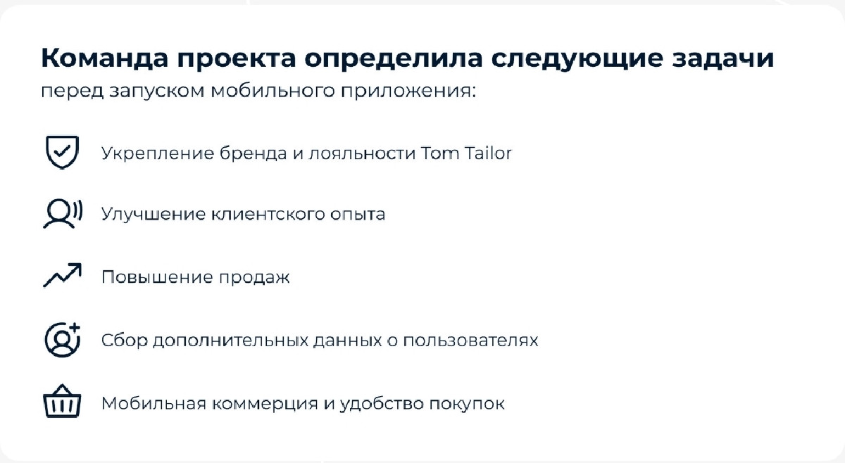В 2023 году бренд Том Тейлор решил добавить еще один маркетинговый канал — мобильное приложение. Разработка, тестирование первой рабочей версии мобильного приложения заняла 3 месяца.