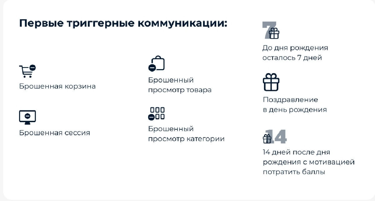 Использовали комбинированный подход для запуска триггеров: часть включили в новые сценарии, а остальные — в уже существующие, используя подход многоканальности, то есть дублирования коммуникаций в разных каналах.