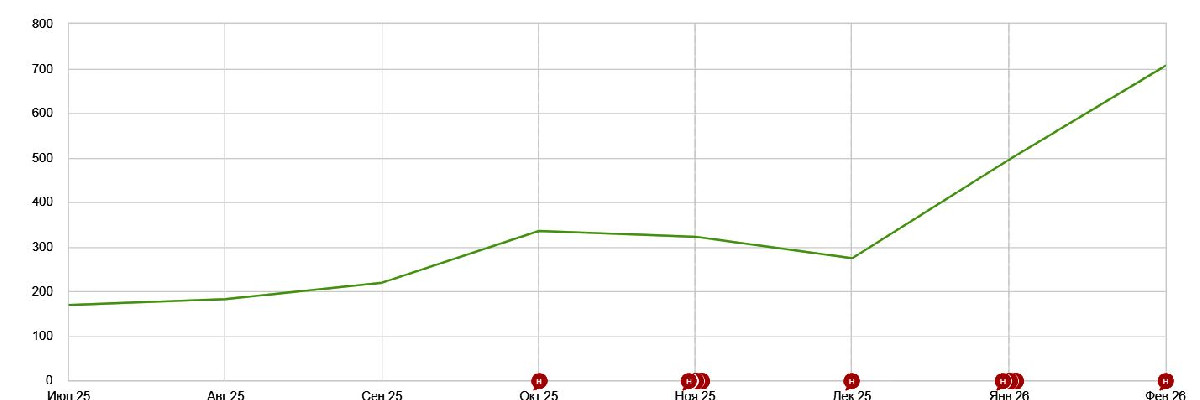 Закупили ссылки и настроили анкор-лист, чтобы ускорить рост видимости и закрепить позиции.