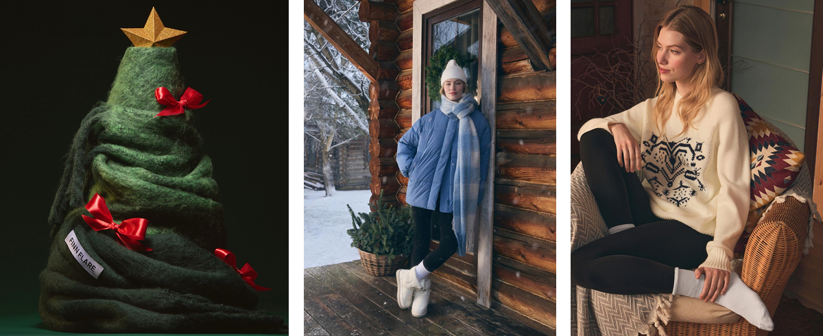 В кампании использовали фото с моделями на природе и в студии, а также изображения товаров без людей.