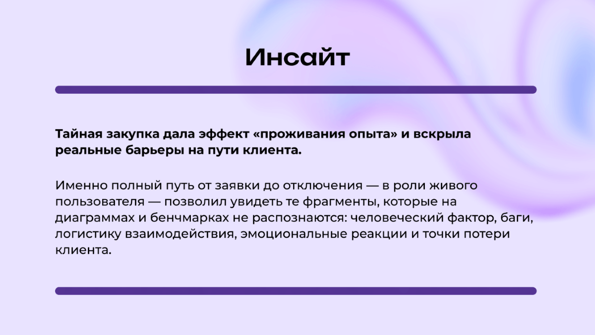 Ценность подхода — в том, что решения принимаются на основе зафиксированного опыта, а не предположений. Это даёт точки роста, которые не видны ни через аналитику, ни через опросы.