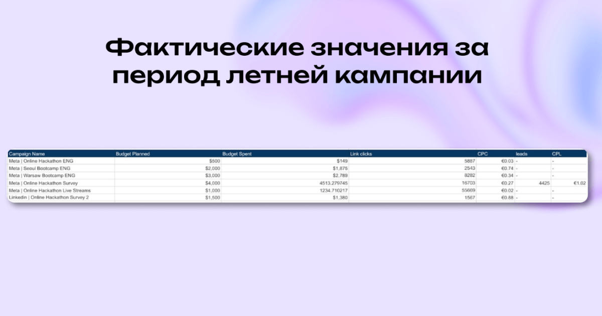 Мы за 4 дня собрали воронку для Web3-хакатона без пикселей и с лимитом $50/день. Привлекли 4 425 лидов по €2.70, масштабировали кампанию на 15+ стран и обеспечили стабильный поток участников через Telegram-прогрев.