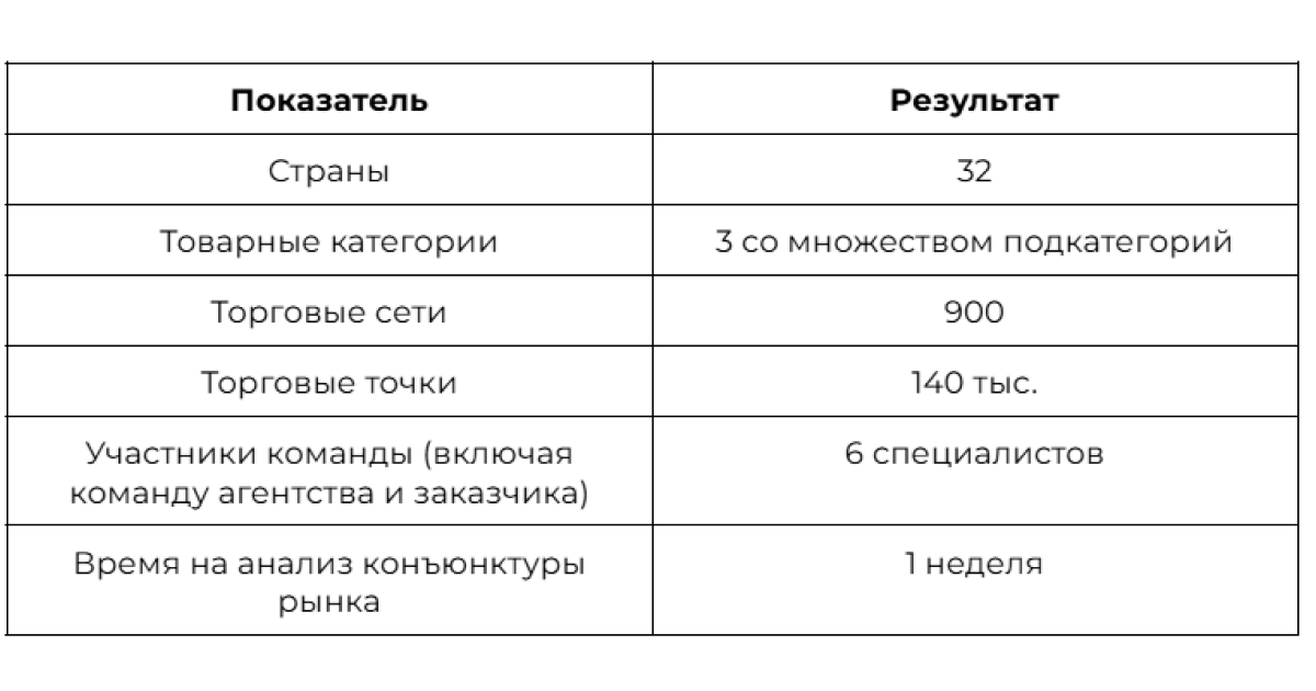 Мы проанализировали 32 страны, собрали и провалидировали 140 000 торговых точек и изучили 900 сетей. Построили систему скоринга рынков и обеспечили быстрый и безопасный запуск продукта на международных рынках.