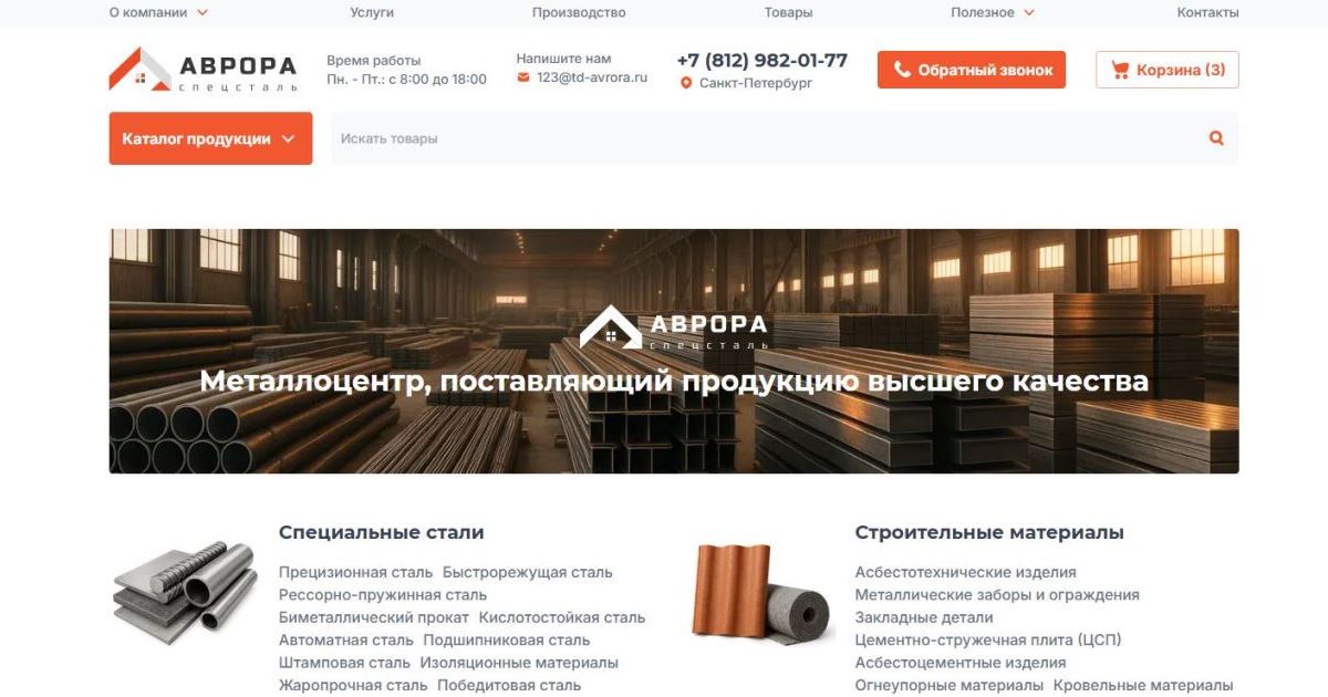 Полноценный интернет-магазин металлопроката с каталогом 7+ миллионов товаров, AI-автоматизацией контента и мультигородами для SEO.
