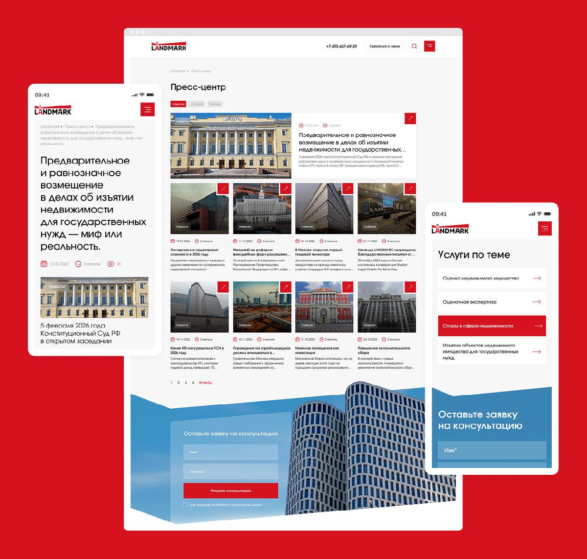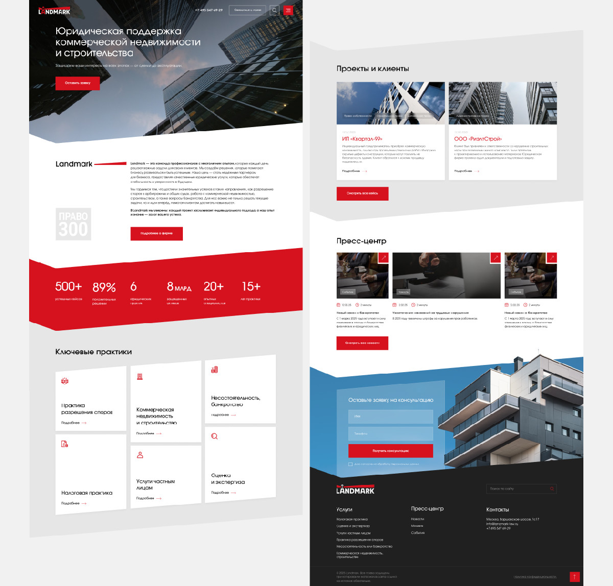 Работа над сайтом Landmark доказывает, что в сложном B2B-сегменте можно и нужно использовать современные визуальные приемы. Мы ушли от стереотипов и создали для юристов платформу, которая говорит на языке крупного бизнеса — через масштаб, динамику мегаполиса и техническую эстетику. Сайт получился живым, системным и полностью готовым к приему трафика.