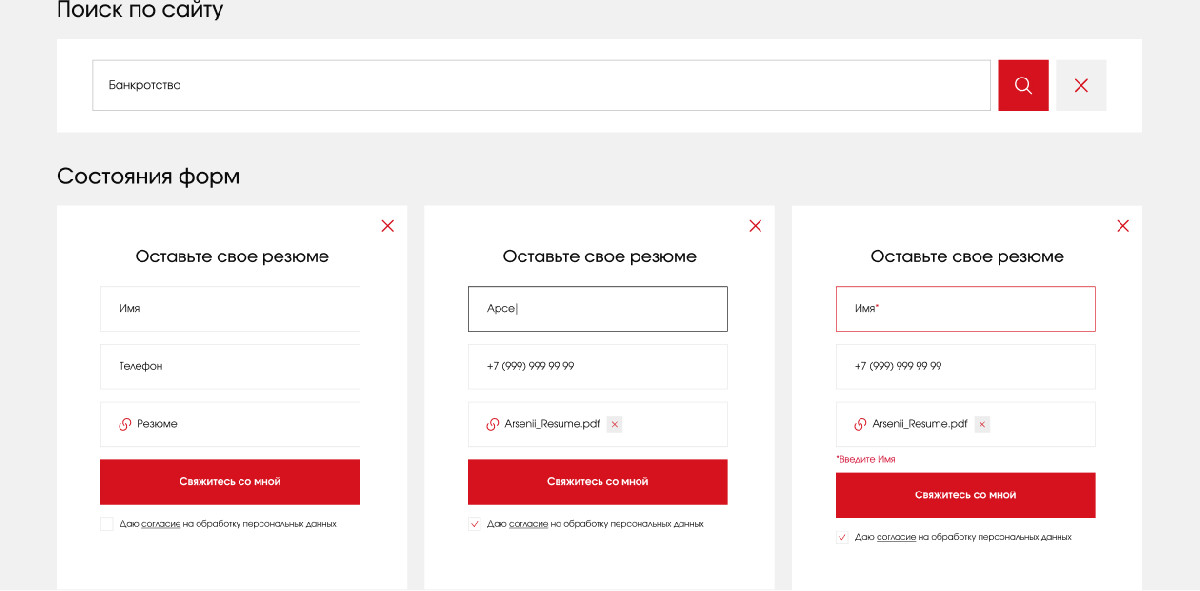 Сетка услуг. Чтобы длинный список юридических практик не выглядел как скучный реферат, мы упаковали его в сетку из карточек разной высоты. Это ломает монотонность и делает интерфейс интерактивным.