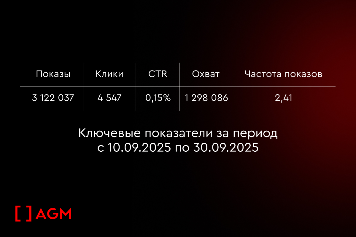 Для наглядности эффективности размещения с помощью программатик-рекламы приведем данные по ключевым показателям в сентябре 2025 года.