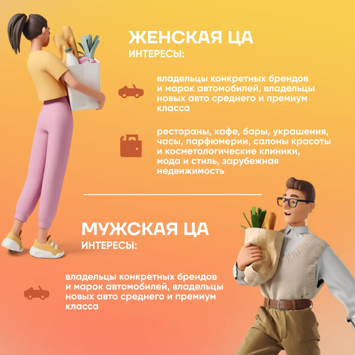 Мы настроили таргетинг, разделив аудиторию на мужчин (30%) и женщин (70%), с учетом их предпочтений.