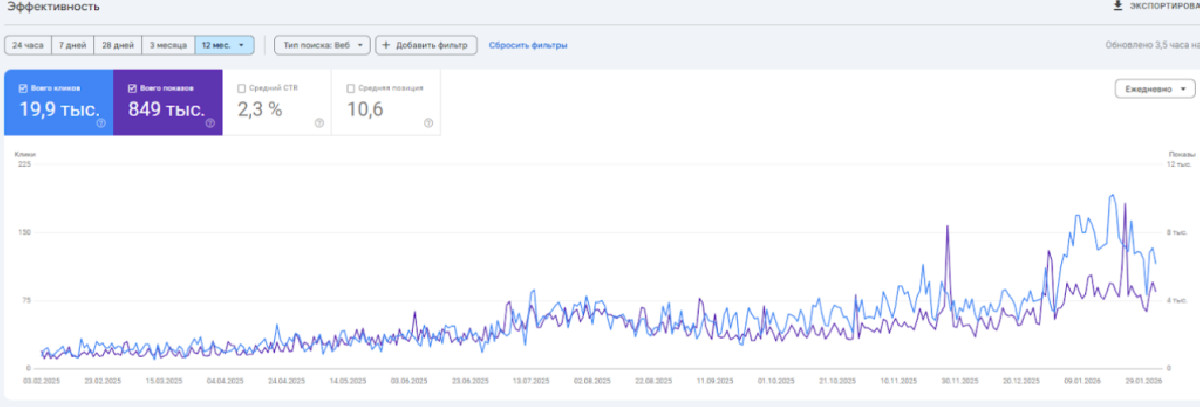 После завершения доработки CMS планируем расширить структуру коммерческих страниц. Это ускорит рост позиций. Параллельно продолжим писать информационные статьи, чтобы привлекать теплую аудиторию, которая может сделать покупку в будущем.