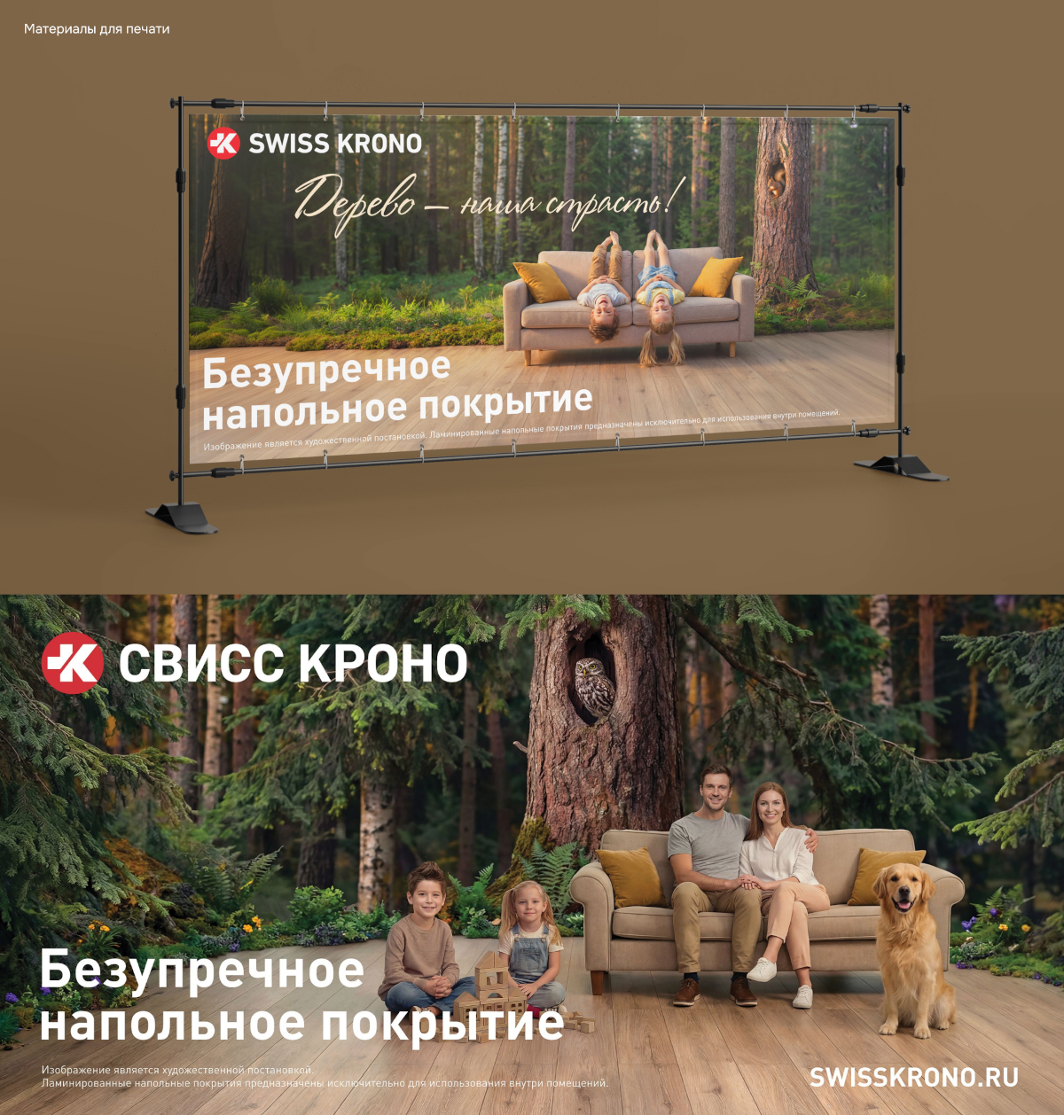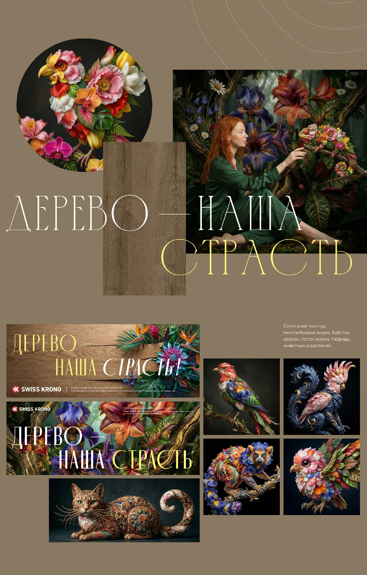 Отправной точкой нашей креативной работы стало осмысление существующего слогана «Дерево – наша страсть!» и философии Swiss Krono: приверженность качеству, долговечность, связь с природой и создание уютного пространства в доме. Эти составляющие легли в основу брифа для нейросетей, которые стали основным инструментом.
