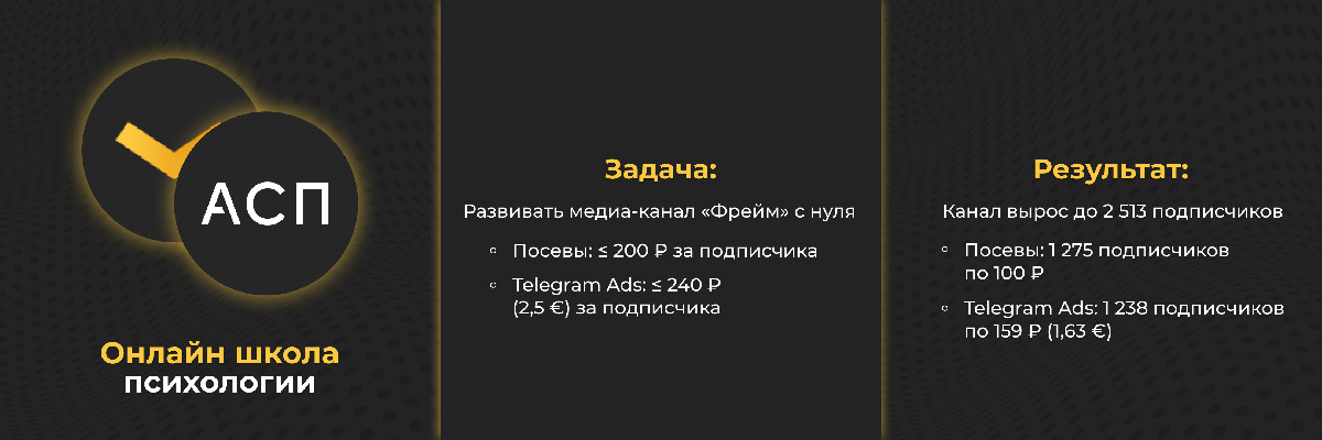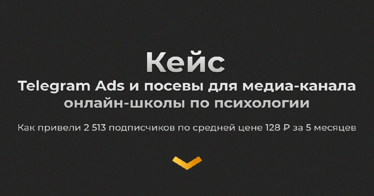 Telegram Ads и посевы для медиа-канала онлайн-школы по психологии: как привели 2 513 подписчиков по средней цене 128 ₽ за 5 месяцев