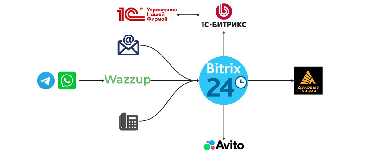 - Подключены основные каналы получения обращений: формы с сайта, телефония, месседжеры и аккаунт Avito.