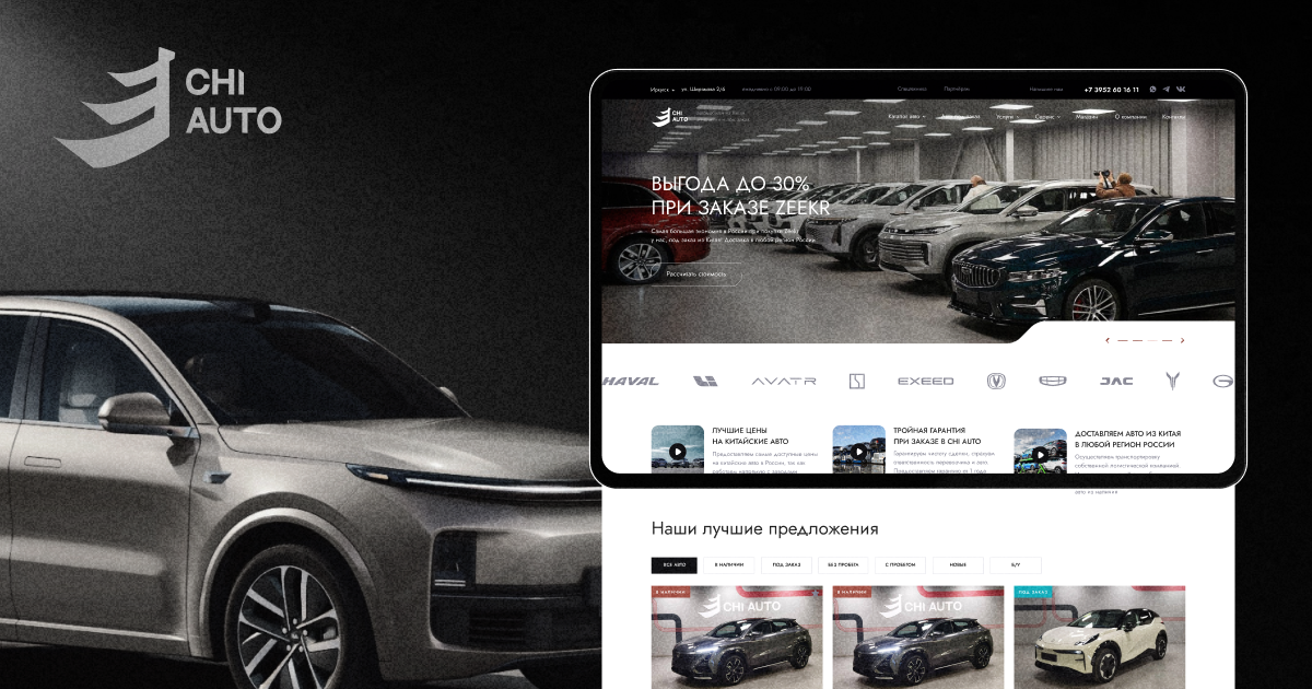 CHI AUTO — импортер автомобилей из Китая, предлагающий широкий модельный ряд: от бюджетных до премиальных, гибридных и электрических авто. Компания работает напрямую с заводами-производителями и предоставляет сервисные услуги. На момент старта проекта у CHI AUTO был один автосалон в Иркутске и сайт на Tilda, который невозможно было автоматизировать и масштабировать. Сегодня сеть насчитывает 6 автосалонов в разных городах России.