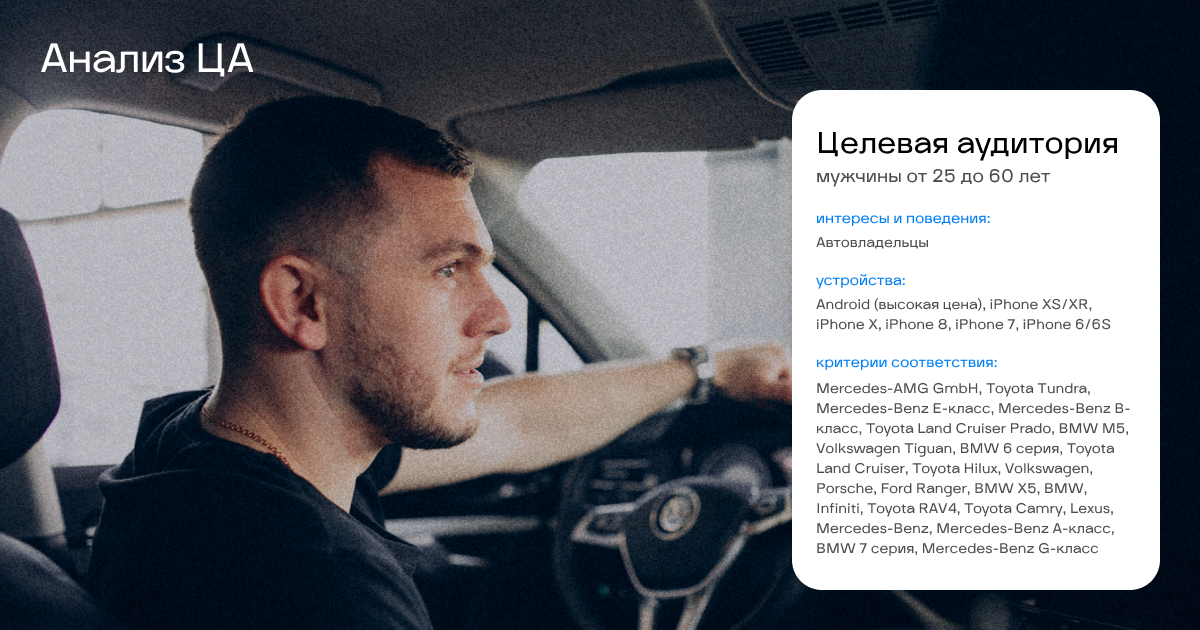 - Таргетинг на участников групп владельцев конкретных марок авто.