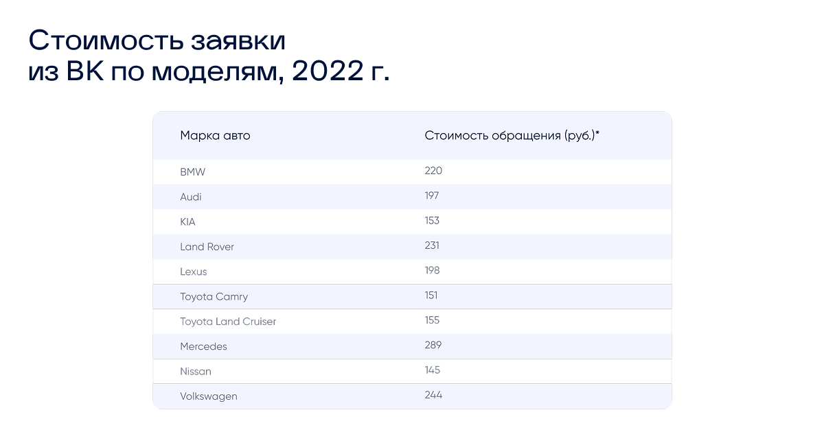 - К декабрю 2022 года стоимость заявки в ВКонтакте увеличилась до 140–290 ₽, но при этом качество лидов улучшилось (выше степень заинтересованности), а средний чек и объем доппродаж выросли на 60%