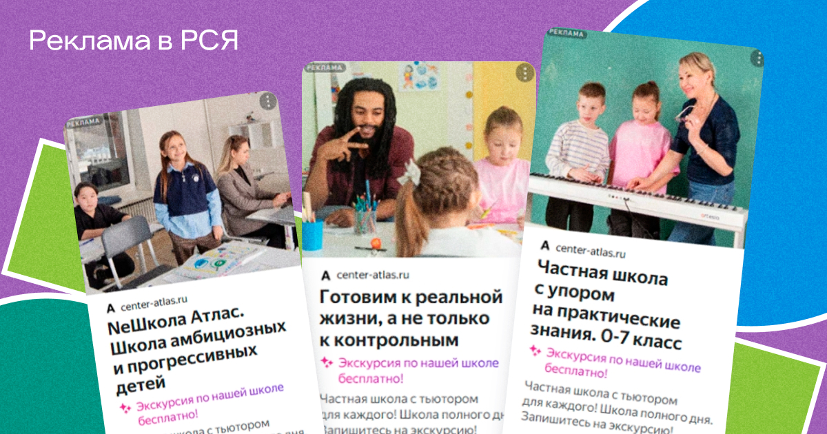 - Реклама в РСЯ: Использовали показы по ключевым запросам и по интересам (родители с детьми от 6 до 14 лет).