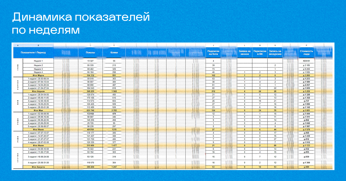 Клиент обратился к нам в декабре 2024 года, то есть примерно за 6 месяцев до начала учебного года 2025–2026. Такой временной запас позволял отказаться от агрессивных рекламных кампаний. Вместо этого мы сделали ставку на формирование базы и постепенный прогрев аудитории.