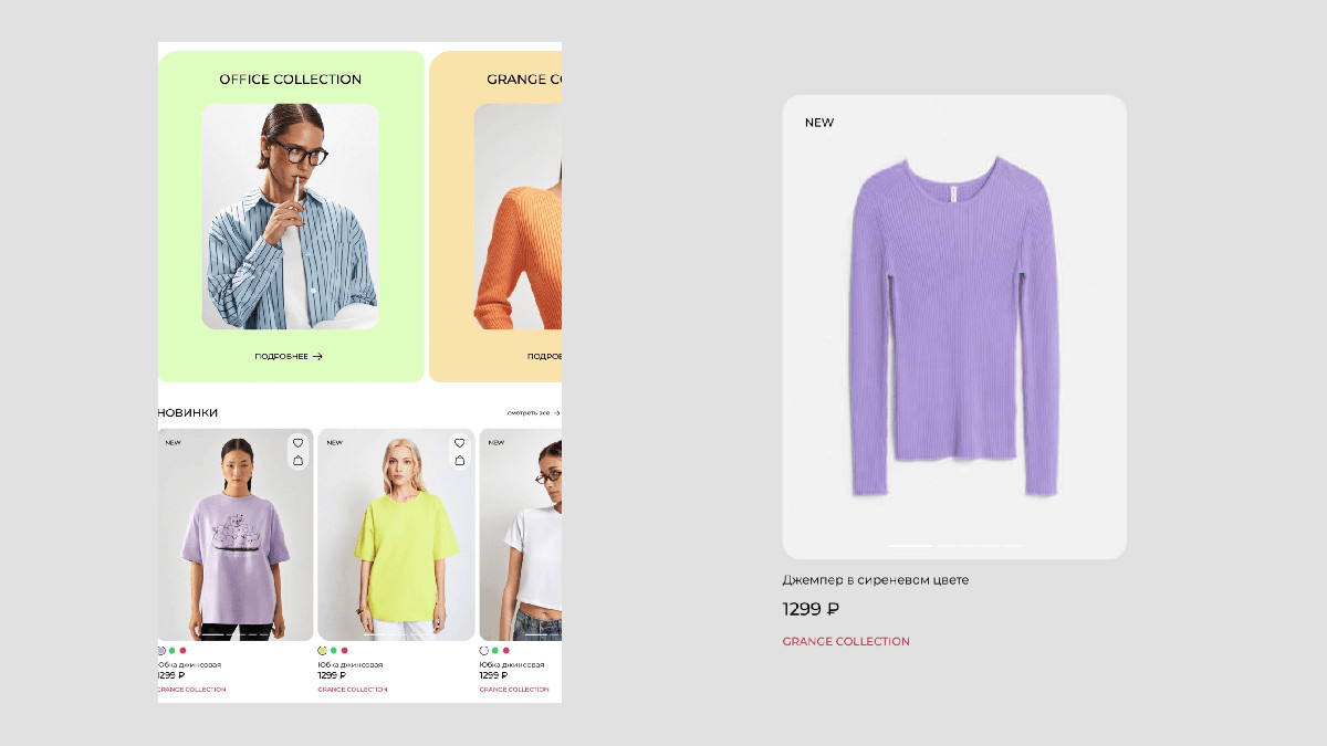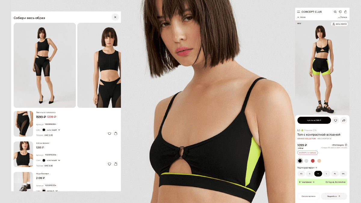 - Возможность добавлять целые модные «образы» в корзину.