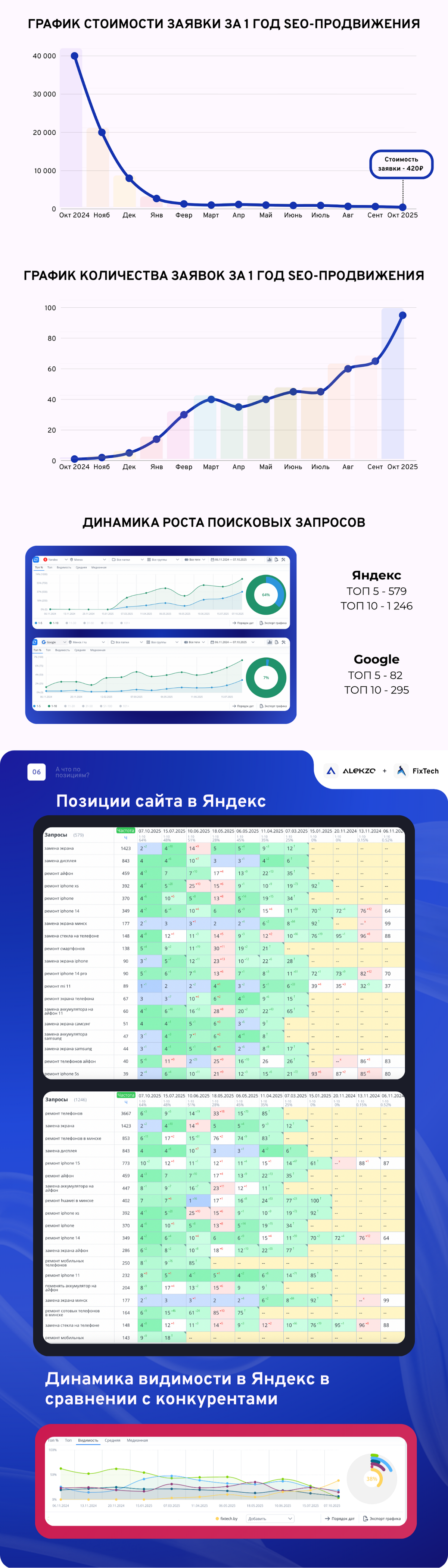 FixTech наглядно показал, что позиции не имеют ценности, пока не превращаются в обращения. Именно поэтому мы начали не с семантики, а с формулы заявок, и уже от неё выстроили всю стратегию: запросы, структуру, контент, UX и автоматизацию. Не было задачи «сделать идеальный сайт», чтобы меня хвалили другие seo-специалисты, была задача - посмотреть сколько seo может давать заявок и как долго окупается.