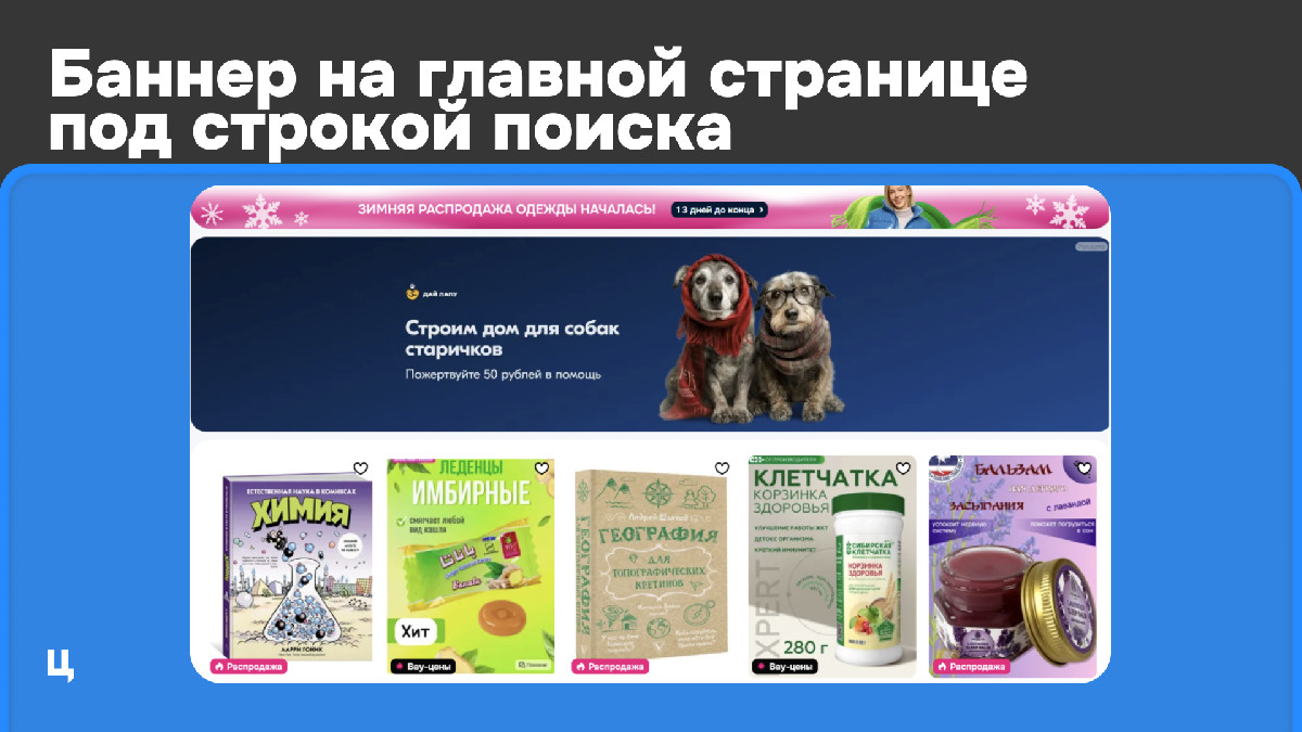 Также сработали таргетинги «Ветаптека», «Товары для животных» и «Товары для собак». А из плейсментов — статичные и видеобаннеры на главной странице под строкой поиска и на странице после оформления заказа. После покупки пользователи охотнее переходили на сайт фонда и оформляли пожертвование.