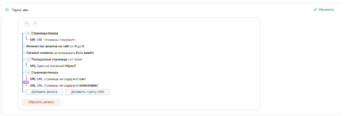 показ осуществляется после просмотра от трёх страниц или пребывания клиента на сайте более трёх минут.