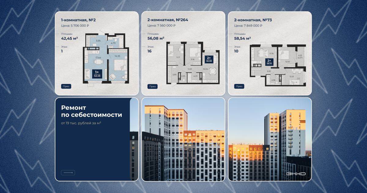 Ремонт от застройщика и ЭНКО.Брокер — это два сервиса компании. Ремонт и юридические тонкости — главные страхи покупателя. Чтобы их нейтрализовать, сервисные услуги «приземляются» через понятные сценарии. Сложные процедуры превращаются в легкие решения, а страх перед неизвестностью — в уверенность.