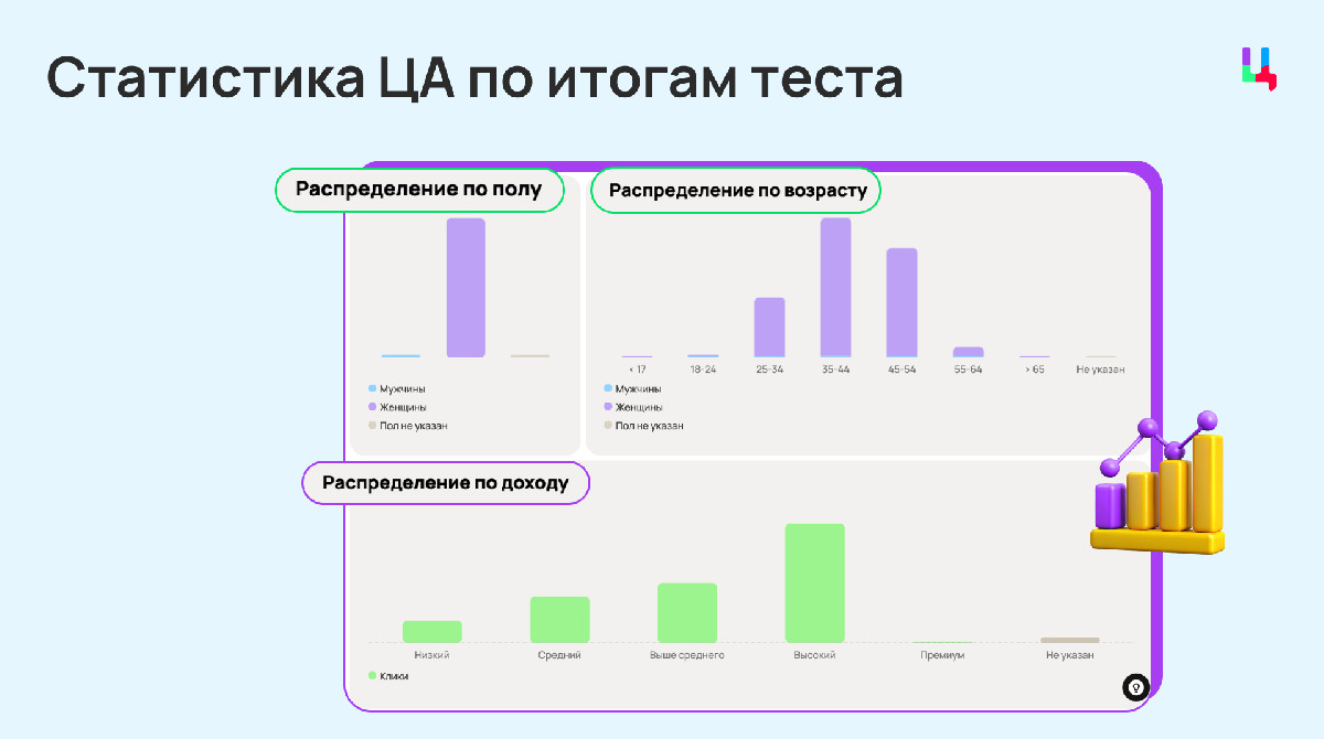 1. Отсекли неэффективные сегменты ЦА — мужчин, а также женщин до 25 лет.