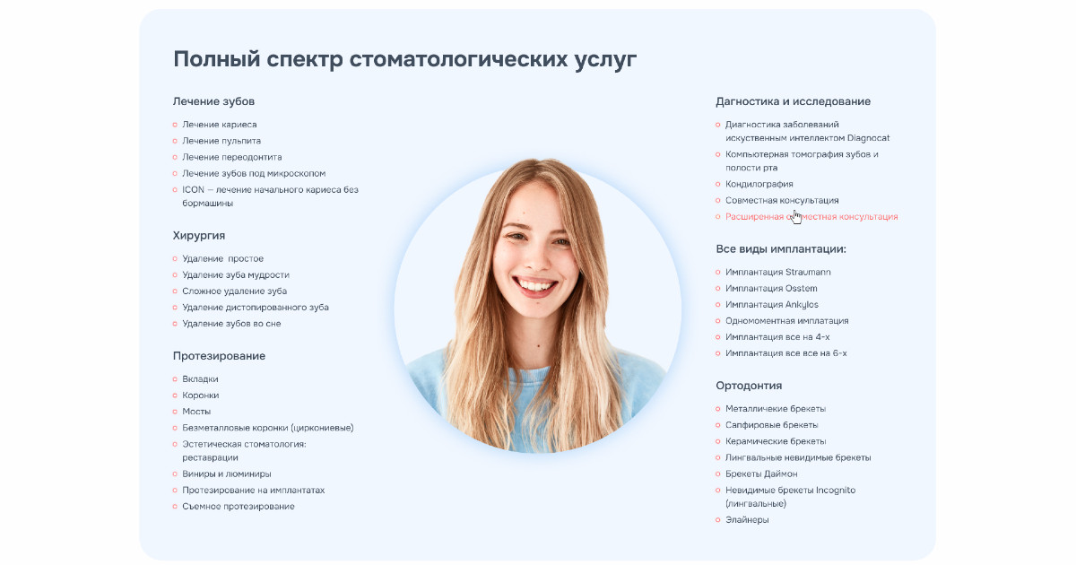 В итоге сайт не помогал продавать услуги премиум-класса и не объяснял, за что пациент платит больше, чем в «средней» стоматологии.