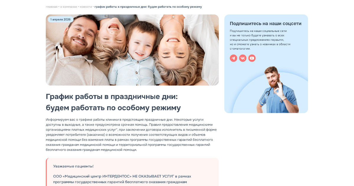 Заказчик: ООО "МЦ ИНТЕРДЕНТОС"