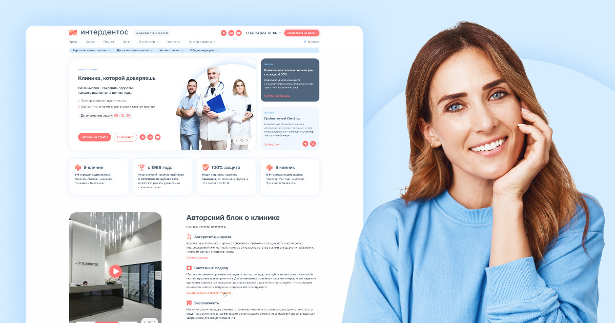 Вместо перегруженного и устаревшего сайта «Интердентос» получил современный, быстрый корпоративный ресурс, который работает как инструмент доверия и продаж.