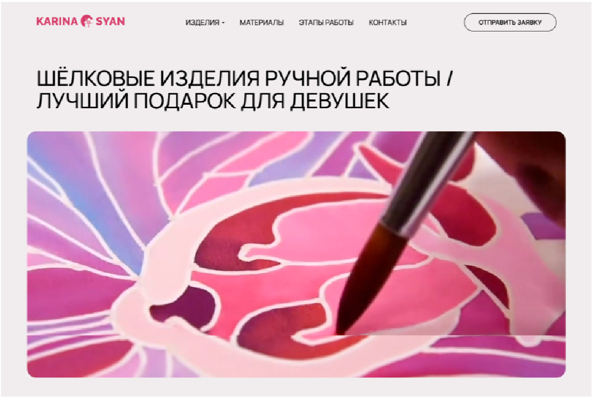 Шёлковые изделия ручной работы Проект попал в галерею лучших проектов пользователей Tilda как наглядный пример современного веб-дизайна. https://tilda.cc/ru/madeontilda/#!/w/https://karinasyan.ru