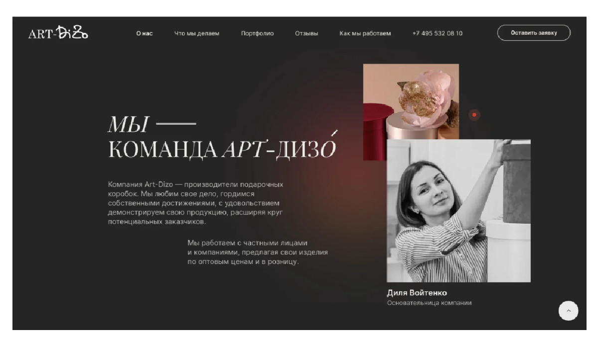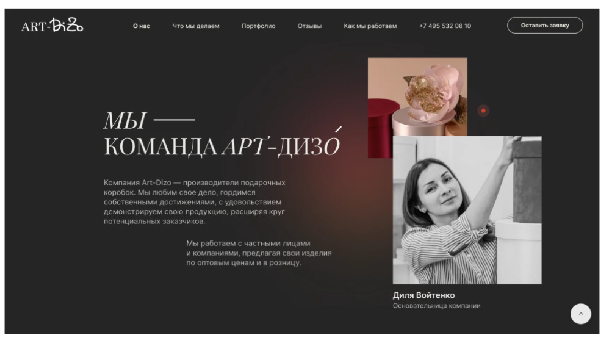 Компания «Art-Dizo» является производителем подарочной упаковки с 2009 года. В ассортименте компании коробки для цветов, подарочные пакеты, ложементы, индивидуальная подарочная упаковка и многое другое.