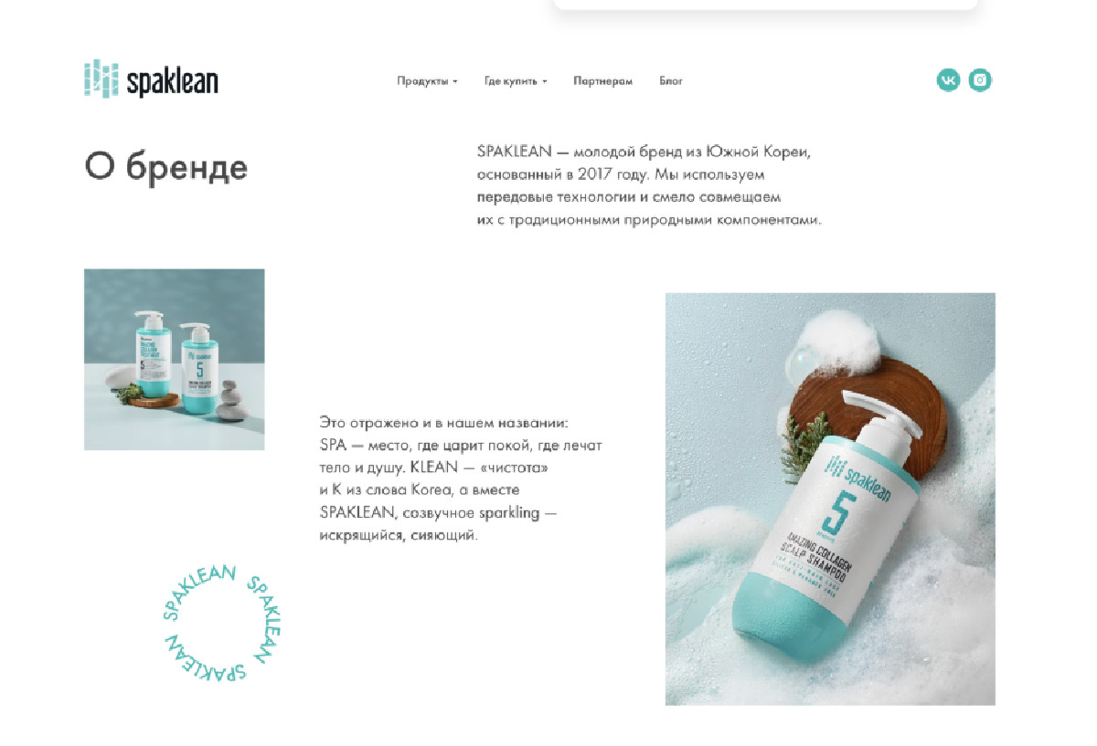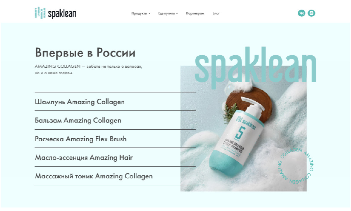 Для клиента SPAKLEAN было важно произвести «вау-эффект» при запуске своего продукта на российском рынке. При этом необходимо было соблюсти исходные гайдлайны от корейского производителя и адаптировать их под использование на сайте.