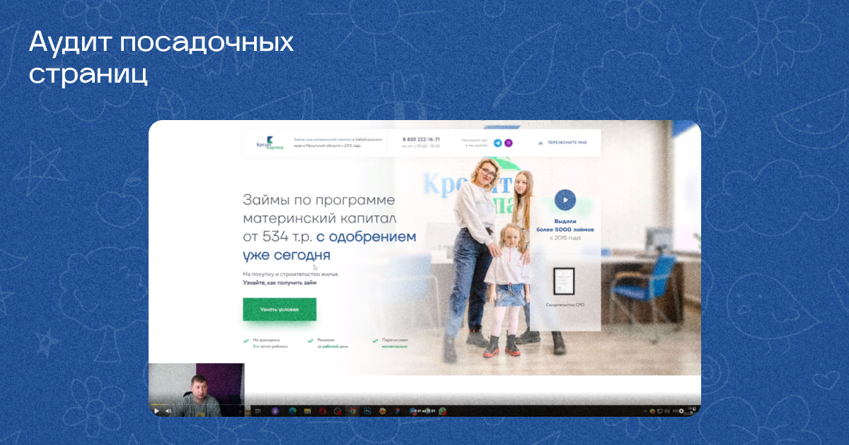 Работа началась с глубокого аудита посадочных страниц и составления ТЗ на доработку. Еще до заключения договора мы дали рекомендации, которые клиент передал своим разработчикам.