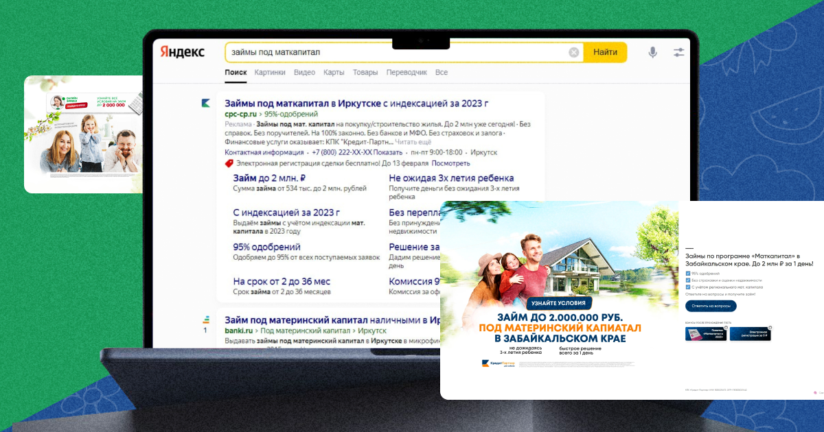 Комплексный перезапуск маркетинга в нише финансовых услуг после блокировок рекламных каналов. Мы внедрили систему кампаний в Яндекс.Директ, разработали конверсионные квизы и через А/Б-тесты доказали эффективность работы с околоцелевым спросом, увеличив поток качественных лидов.
