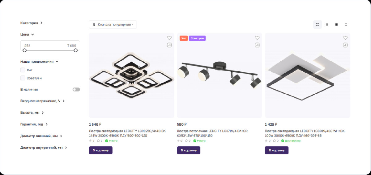 LEDCITY активно продает продукцию на маркетплейсах и развивает собственные линейки товаров. Такой формат работы со временем начал ограничивать бизнес. Компания не могла в полной мере управлять ассортиментом, ценами и взаимодействием с клиентами.