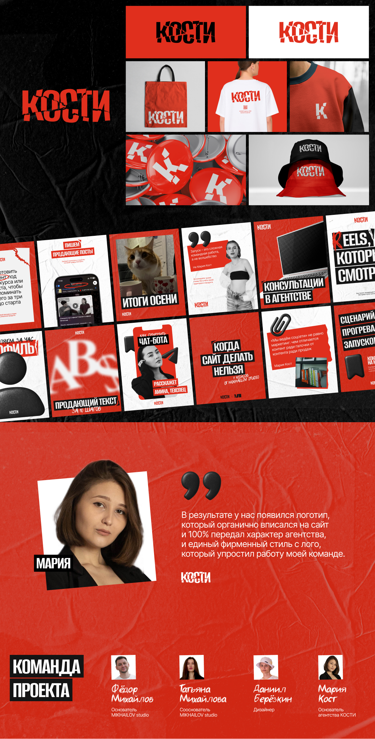 Проект агентства «Кости» стал примером комплексного подхода к визуальной идентичности, где каждый элемент работает на усиление позиционирования бренда.