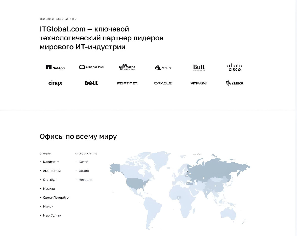 ITGLOBAL.COM — международный поставщик ИТ-услуг. Требовался мультиязычный сайт с учетом региональных особенностей. Сделали дизайн под менталитет каждой локации, запустили за 3 месяца.