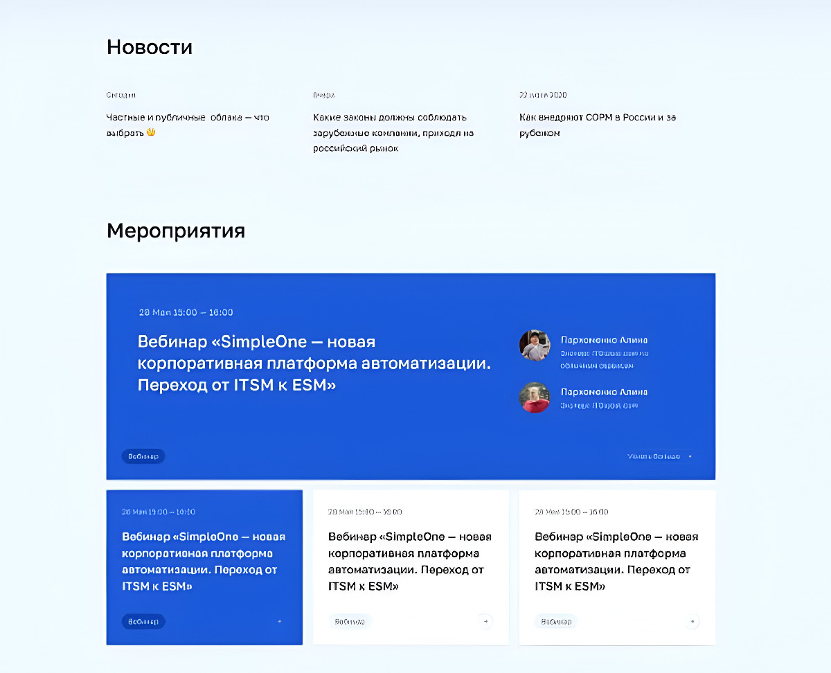 Процесс разработки тесно связали с маркетинговыми задачами сайта IT-компании в B2B. Поэтому в проекте предусмотрели несколько разных форм для сбора лидов и CTA-кнопок — в зависимости от услуги, которой заинтересовался пользователь.