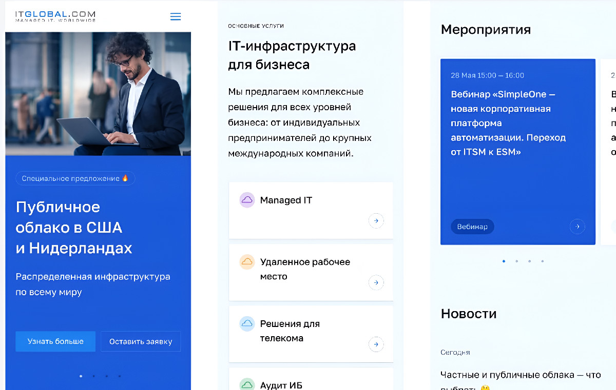 Создание сайта для провайдера ИТ‑услуг ITGLOBAL.COM