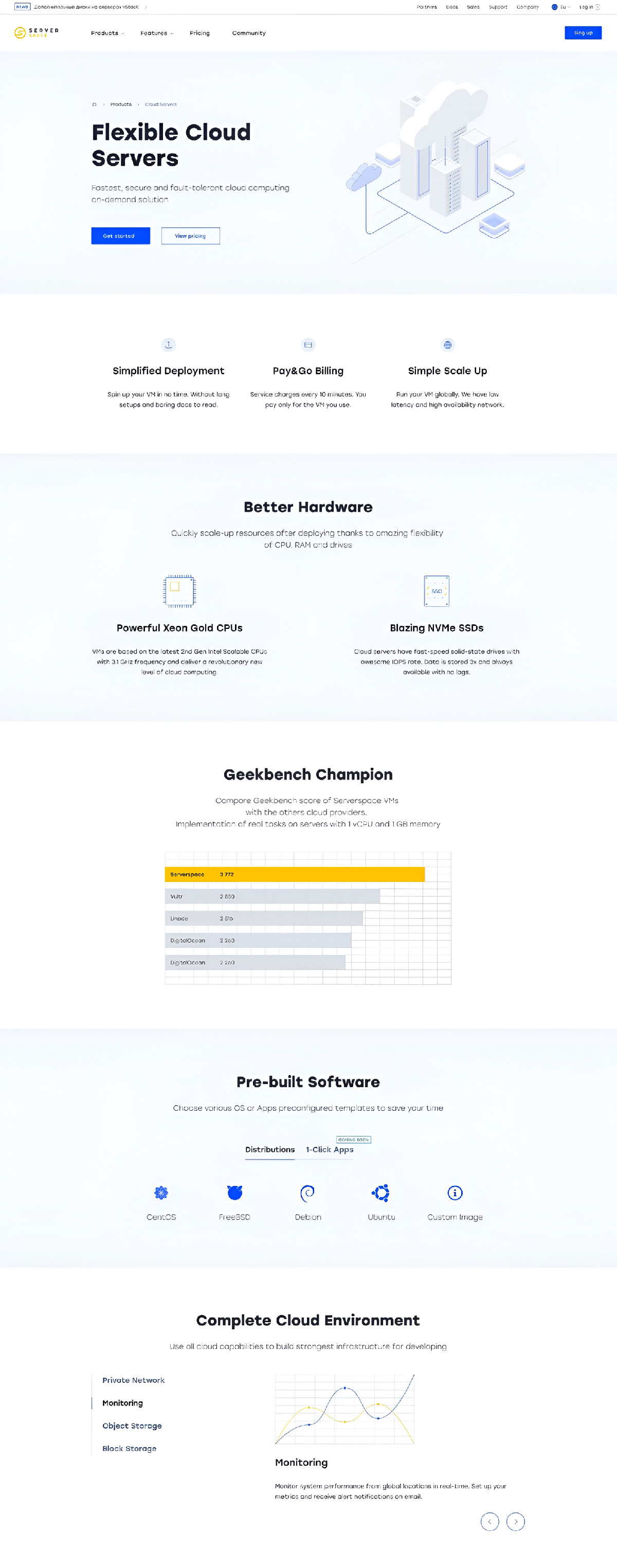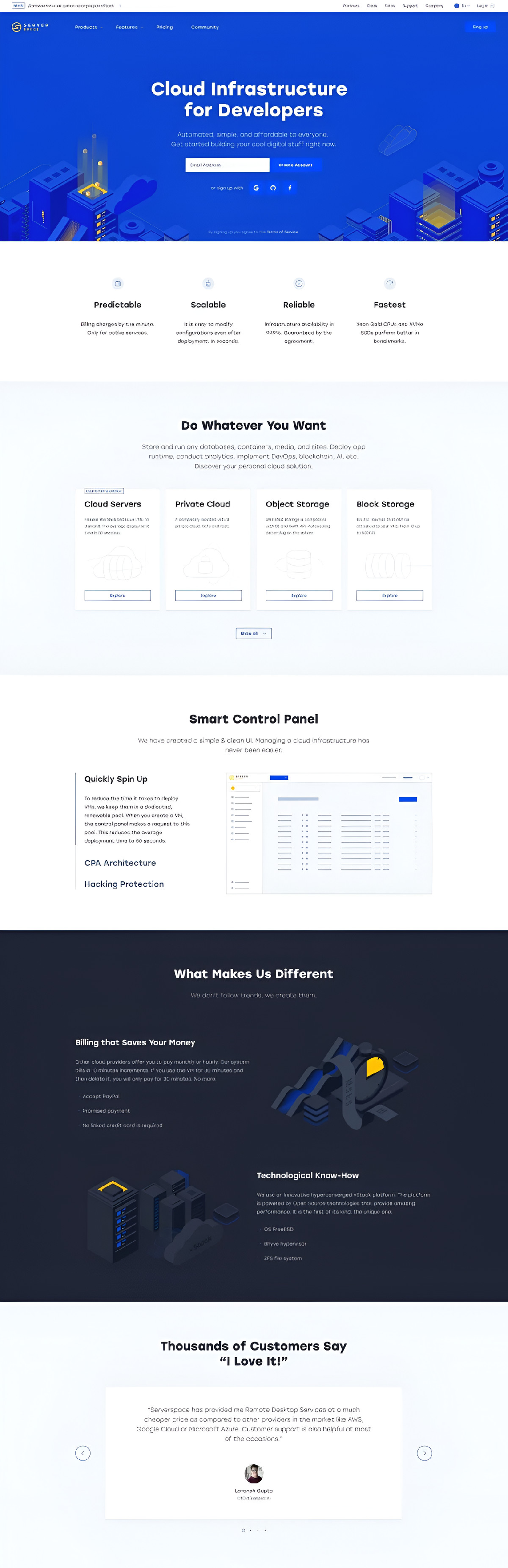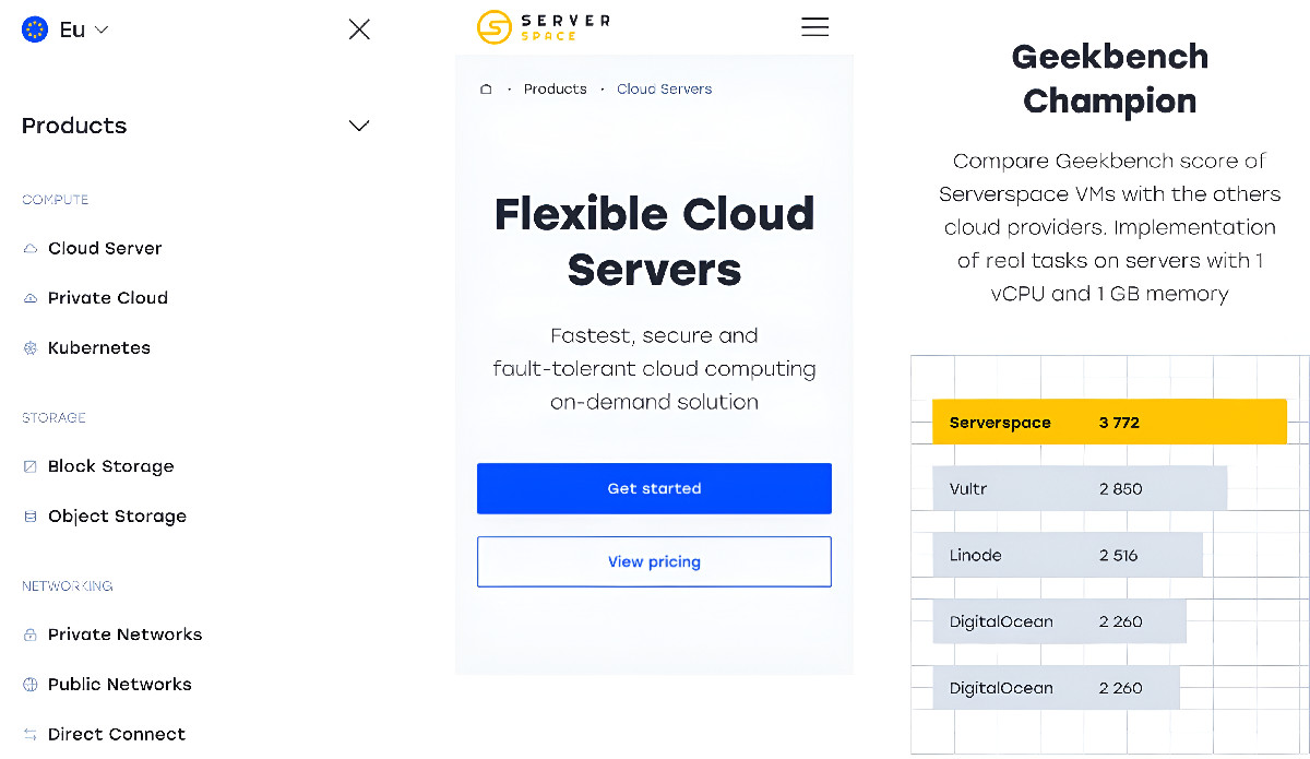 Serverspace — международный сервис аренды облачной ИТ-инфраструктуры. Требовался мультиязычный сайт с системой расчёта стоимости без потери скорости. Написали свой MVC-фреймворк, запустили 7 сайтов за 3 месяца.