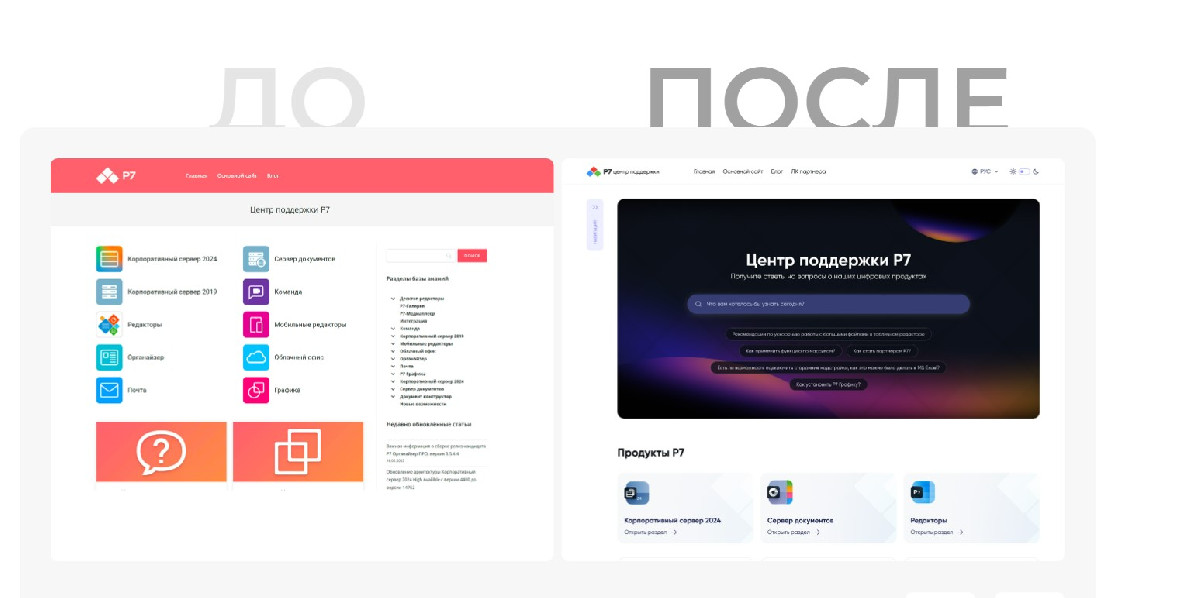 Новый дизайн центра поддержки Р7 помогает пользователям быстрее находить нужную информацию, снижает нагрузку на службу поддержки и формирует позитивный образ современного, технологичного продукта.