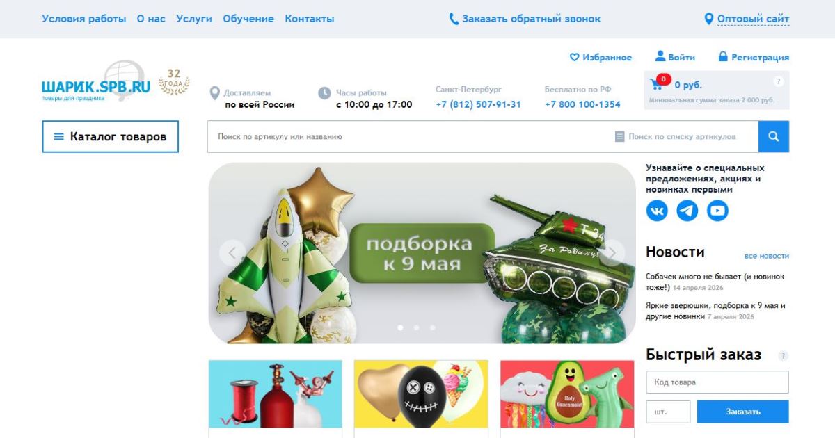 Шарик.СПб — оптовый интернет-магазин воздушных шаров и праздничных товаров