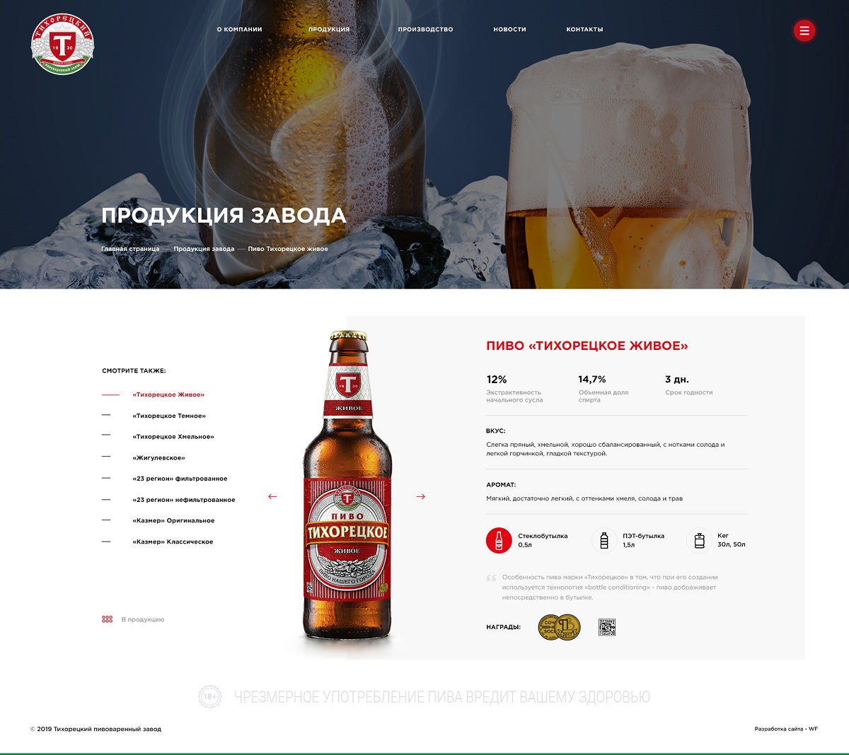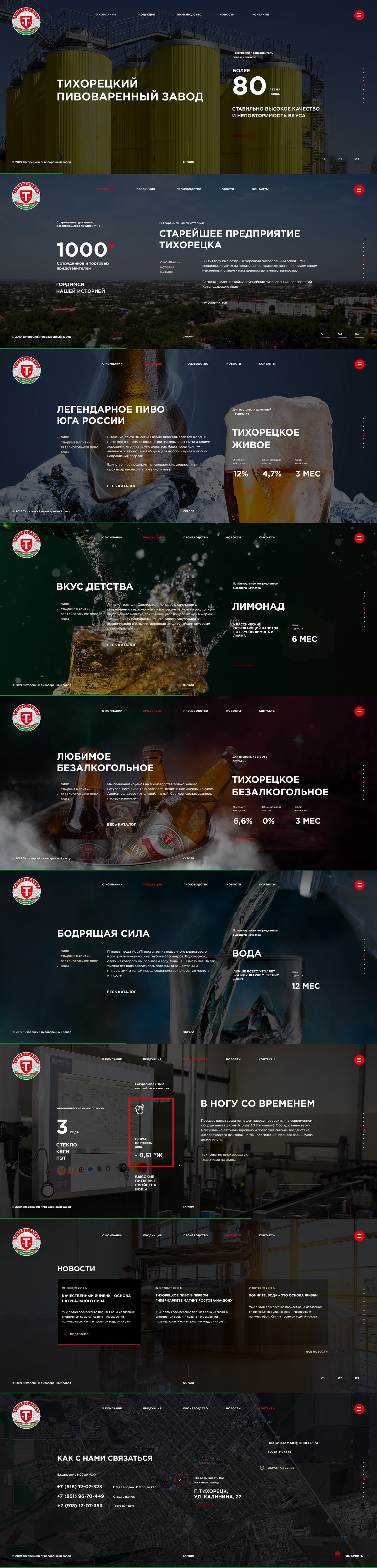 Новый ресурс - современный, стильный, лаконичный. При разработке дизайн-концепции во главе угла для нас стояла задача сделать удобным для пользователей восприятие текстовой информации. Во многом дизайн был определен требованиями фирменного стиля компании "Тихорецкий пивзавод" (основные цвета, шрифты).