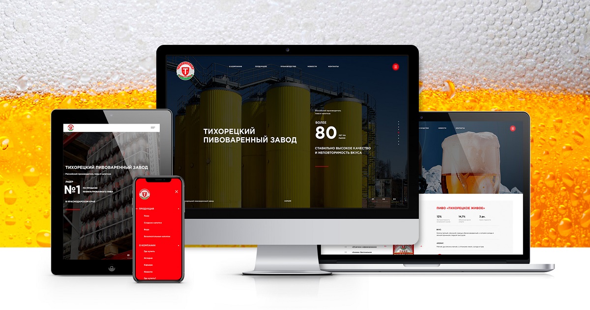 Разработать с нуля сайт, который бы предоставлял наиболее полную информацию об истории компании, возможностях сотрудничества с ней. На сайте должно быть легко и просто найти любую информацию, касающуюся компании "Тихорецкий пивзавод".