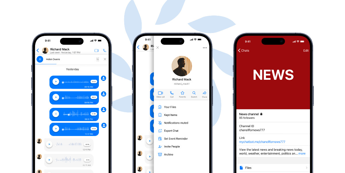 Команда уделила особое внимание дизайну. Для iOS и Android создавались интерфейсы с максимальной плавностью, анимацией и UX-деталями, привычными пользователю Apple. Мы вымеряли каждый жест, чтобы мессенджер ощущался нативным и живым.
