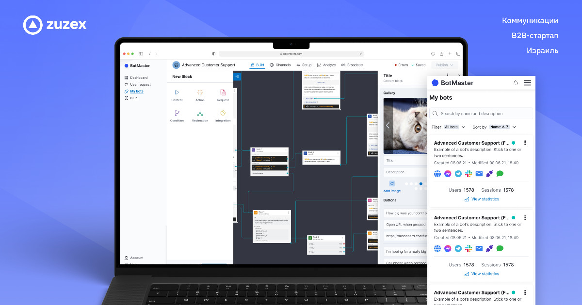 Платформа превратилась в полноценный no-code-конструктор чат-ботов, которым пользуются компании по всему миру, от малого бизнеса до крупных корпораций. Создание бота занимает считанные минуты: пользователь задает сценарии, добавляет текст, изображения, кнопки, карточки и триггеры, настраивает корпоративный стиль – и готово.